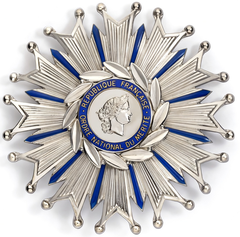 - la Légion d’honneur, plus haute distinction française qui honore les mérites éminents acquis soit à titre civil, soit sous les armes ;